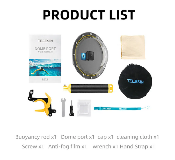 TELESIN Dome Port Waterproof Housing Case Used For GoPro 12/11/10/9