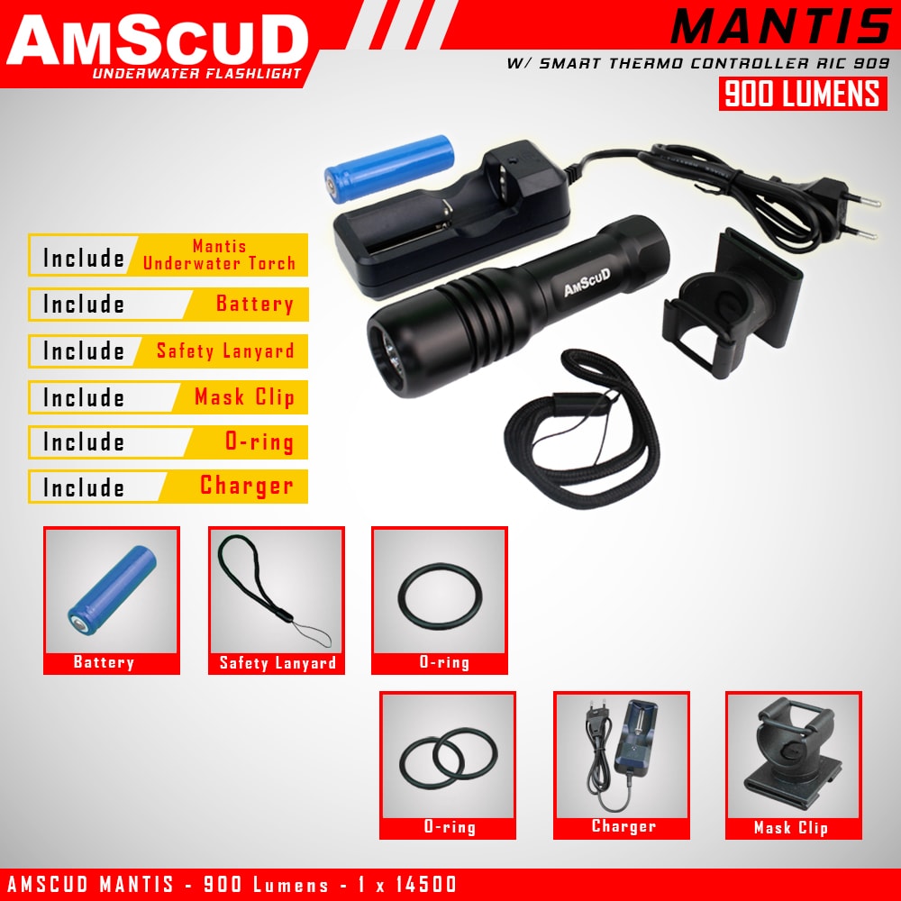 TORCH AMSCUD MANTIS + BATTERY AA RECHARGEABLE + CHARGER