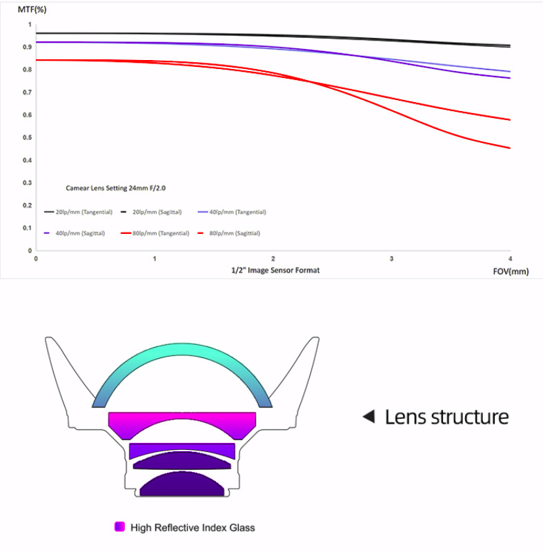 •Compatible camera and lens (Recommendation):Sensor Size:6.4mmX4.8mm (1/2")Camera Lens:24mm(35mm Equivalent)-F/1.4