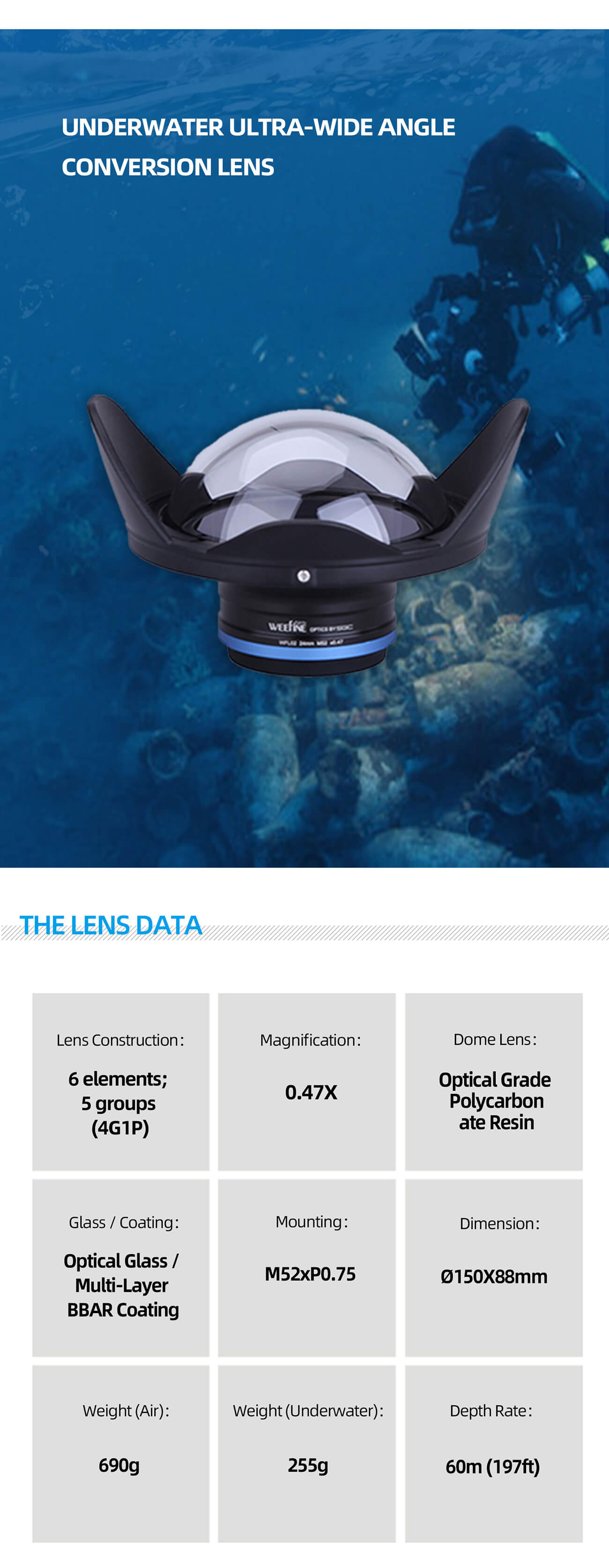WEEFINE WIDE ANGLE WET LENS M24-52 WFL02